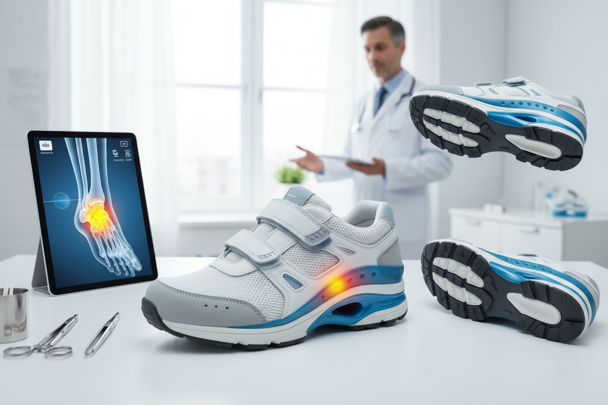 A medical-style shoe designed to support, cushion, and protect your feet daily.